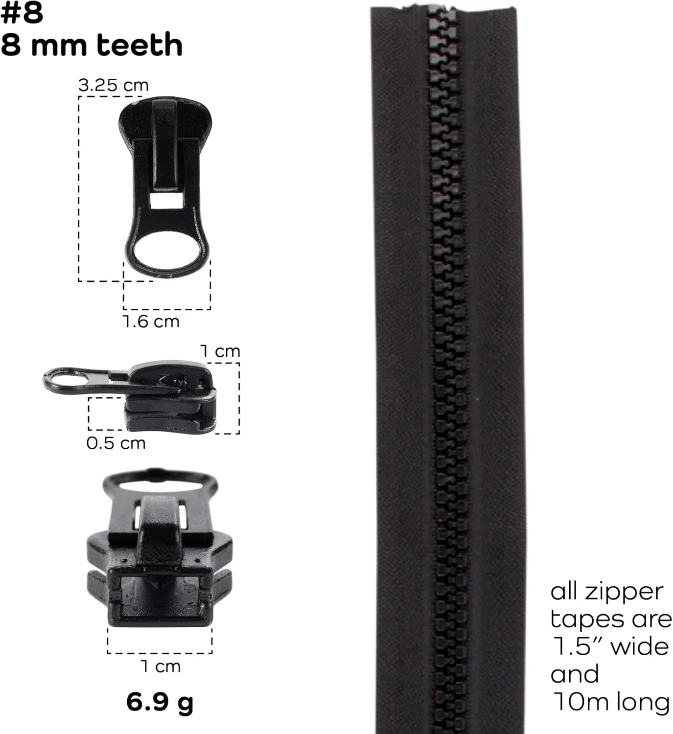 Cut to length and add a pull to make the perfect length zipper for dresses, bags, purses, cushions, beanbags or any other project. If you do not have any instructions, it's really easy to google or youtube it for a fast explaination and how to.
