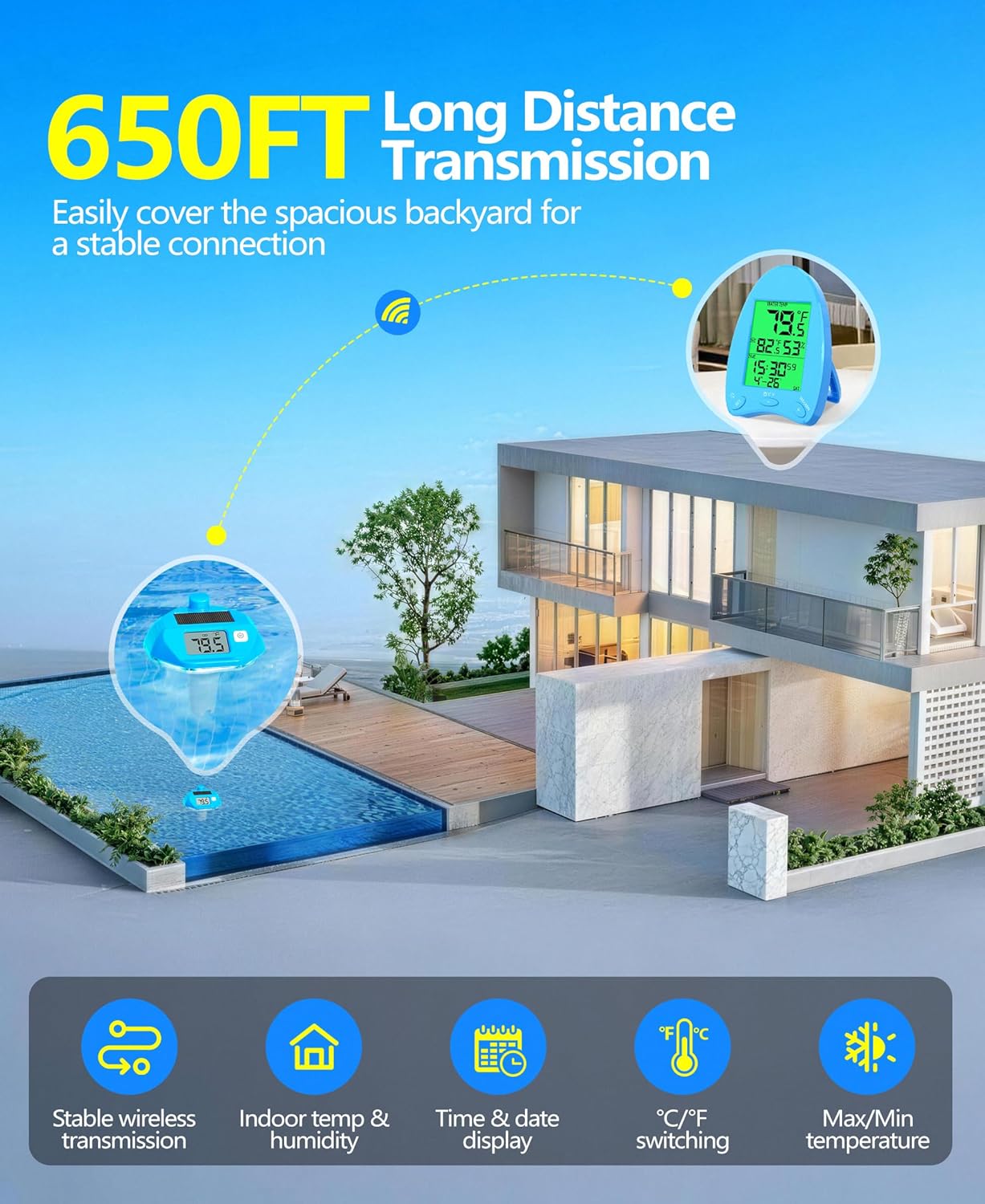 | Included Components | Floating Pool Thermometer, Indoor Receiver with Backlit Display, Indoor Environment Monitor |